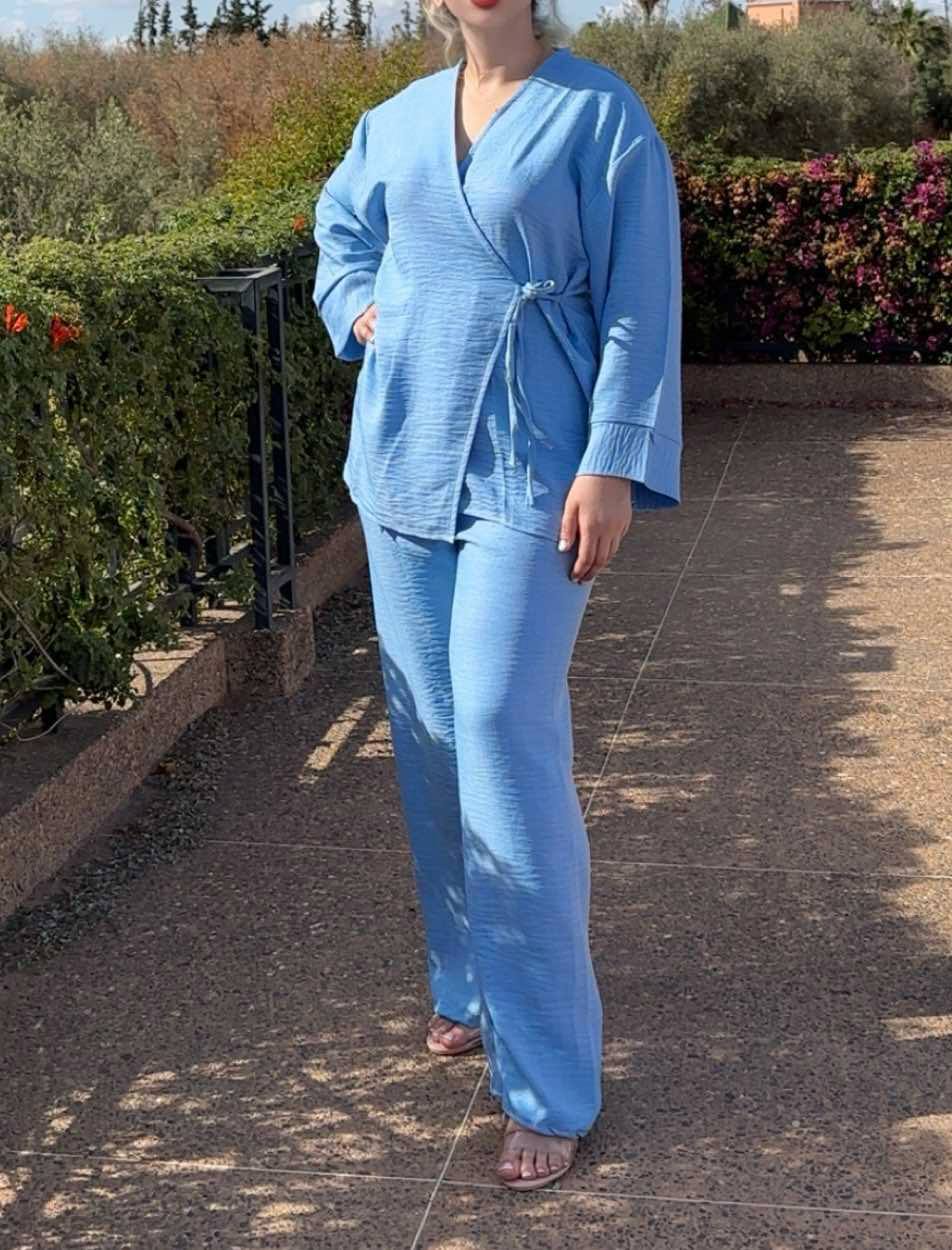 Cet ensemble deux pièces en lin est élégant et confortable, fait pour les chaudes journées d'été. Fabriqué en lin de haute qualité, il vous gardera au frais et au sec tout en vous offrant un look chic et intemporel. Idéal pour les occasions décontractées ou formelles.